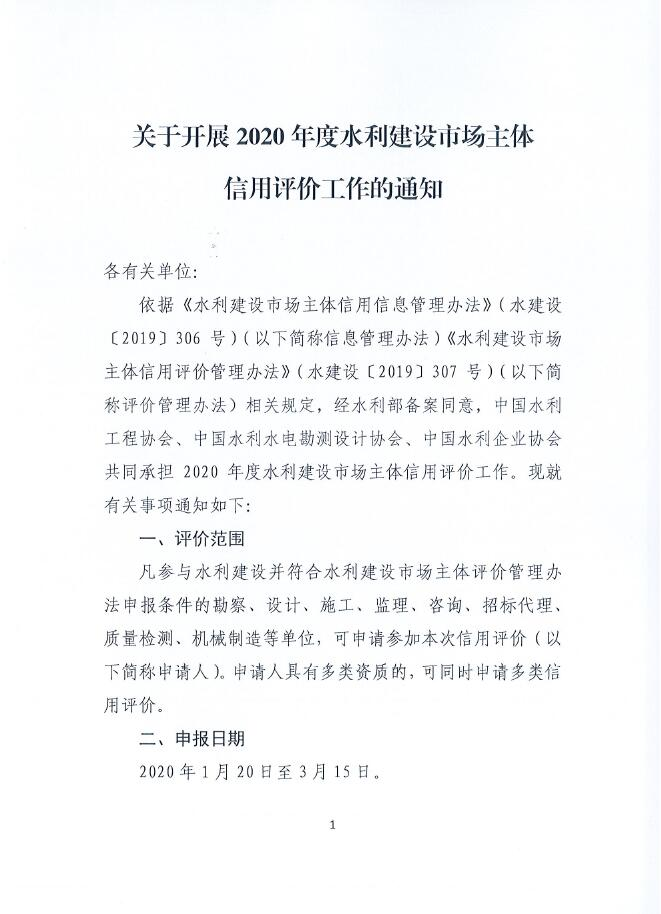 關(guān)于開(kāi)展2024年度水利建設(shè)市場(chǎng)主體信用評(píng)價(jià)工作的通知